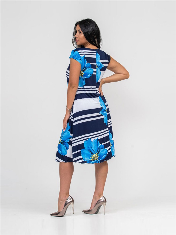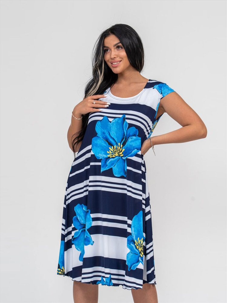 Сарафан женский расклешённый к низу из трикотажного полотна «масло» длинной ниже уровня колена. Вырез горловины О- образный. Рукав – крылышко.
