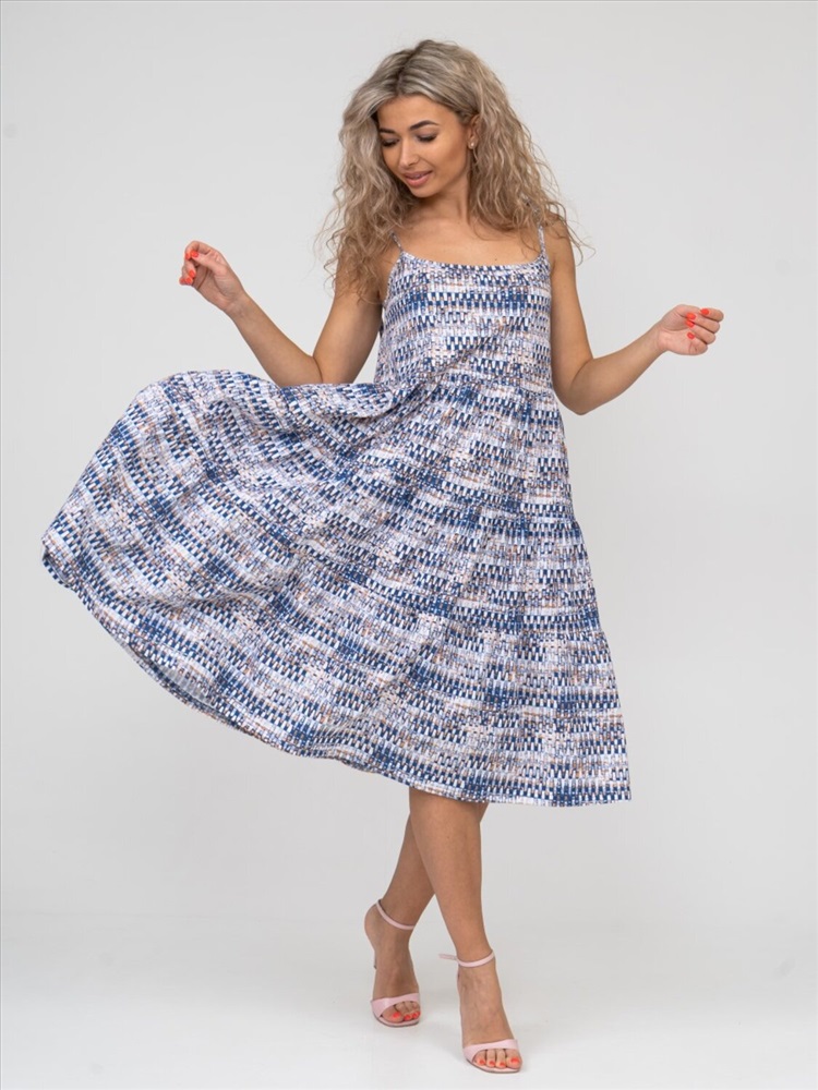 Сарафан молодёжный расклешенного силуэта, состоящий из 4-х ярусов со сборкой. Изготовлен из трикотажного полотна «кулирка» на регулируемых лямках. Изделие подойдет для повседневной носки и отдыха.
