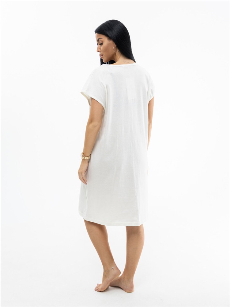 Сорочка ночная женская полуприлегающего силуэта, О-образная горловина. Принт на уровне груди. Длина до колена. В составе чистый хлопок. Благодаря этому сорочка неимоверно приятна в носке. Она дышит и отлично впитывает влагу, не вызывает аллергии, и поэтому подходит девушкам и женщинам с чувствительной кожей.