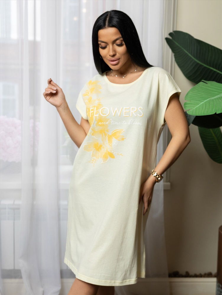 Ночная сорочка из хлопка, свободной силуэтной формы, длиной до колена с О-образной горловиной и красивым принтом спереди.