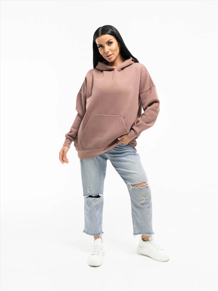 Толстовка в стиле oversize со спущенной линией плеча и капюшоном. На полочке карман - кенгуру. Модные тренды от бренда Текс-плюс.Ru придадут вашему образу неповторимость, а премиальное качество подарит незабываемое ощущение комфорта.