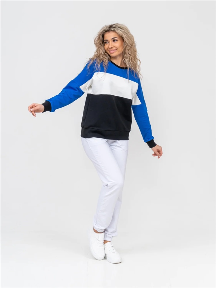 Эту осень скрасит нарядная, нежная и романтичная толстовка из мягкой ткани. Стильный крой, удобная посадка делает вещь в спортивном стиле удобной для повседневной носки. Женская толстовка без капюшона, свободный c длинным рукавом на манжете.Прекрасно сочетается с любой деталью гардероба. Идеальна для прогулок, спорта, комфортной работы и отдыха.