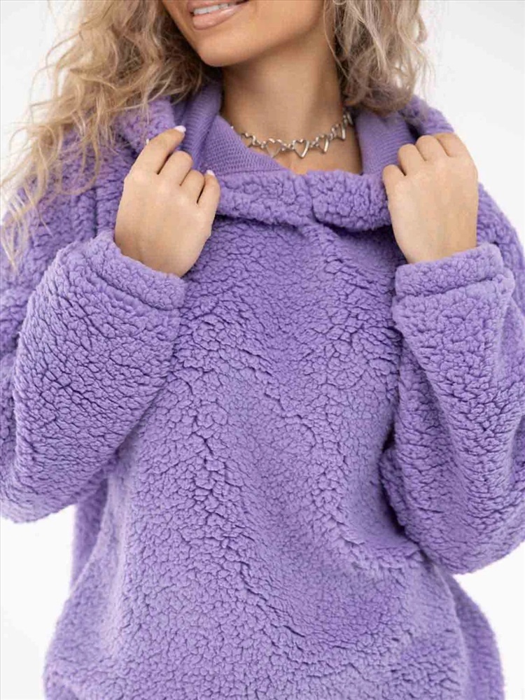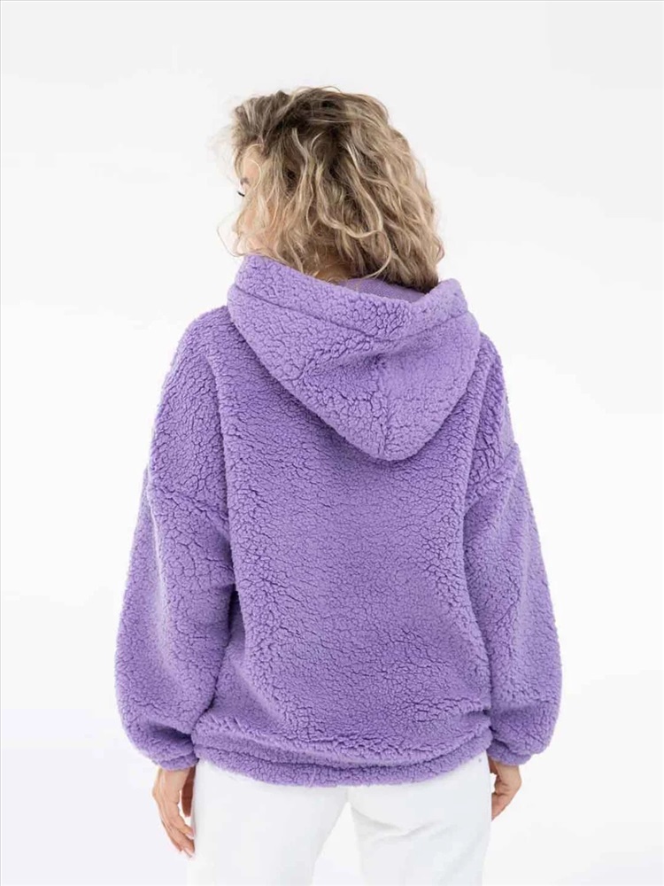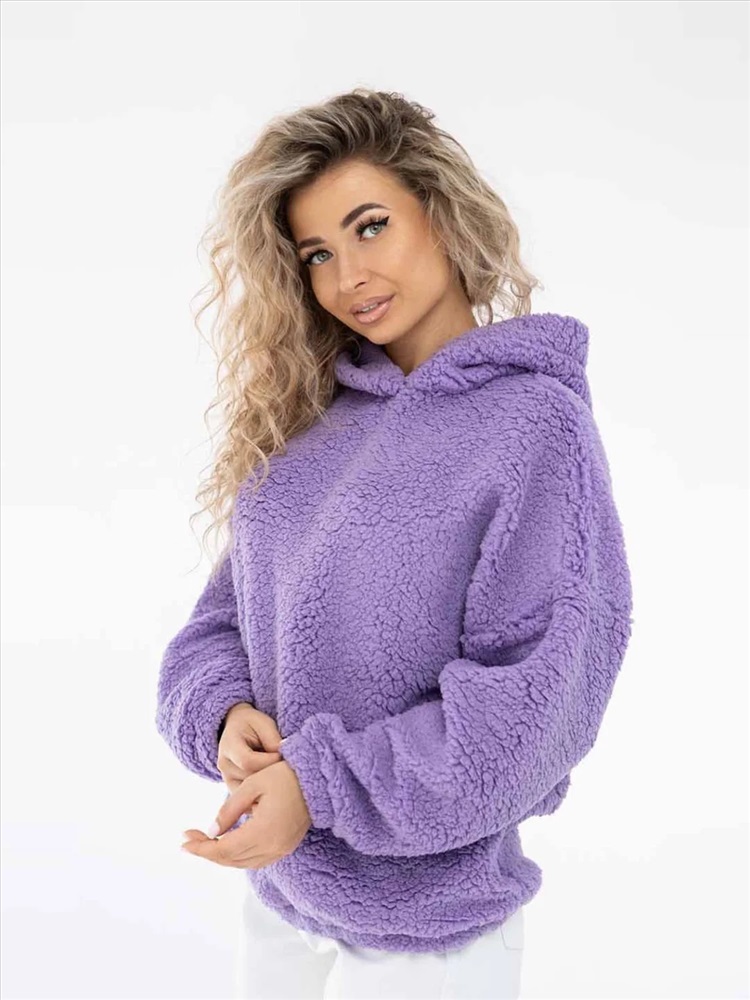 Толстовка оверсайз станет прекрасным подарком на любой праздник! Шерпа – синтетическое полотно с имитацией меха на лицевой поверхности. На ощупь материал плотный, приятный, мягкий. Хорошо согревает. Изнаночная сторона – текстильное полотно трикотажного переплетения. Фактура ткани хорошо видна на фото. Идеально подойдет для прохладного времени года. Толстовка идеально сочетается с любыми вещами в гардеробе с джинсами, юбкой, можно надеть поверх платья холодным вечером. Она непременно понравится взрослым женщинам и девочкам - подросткам.