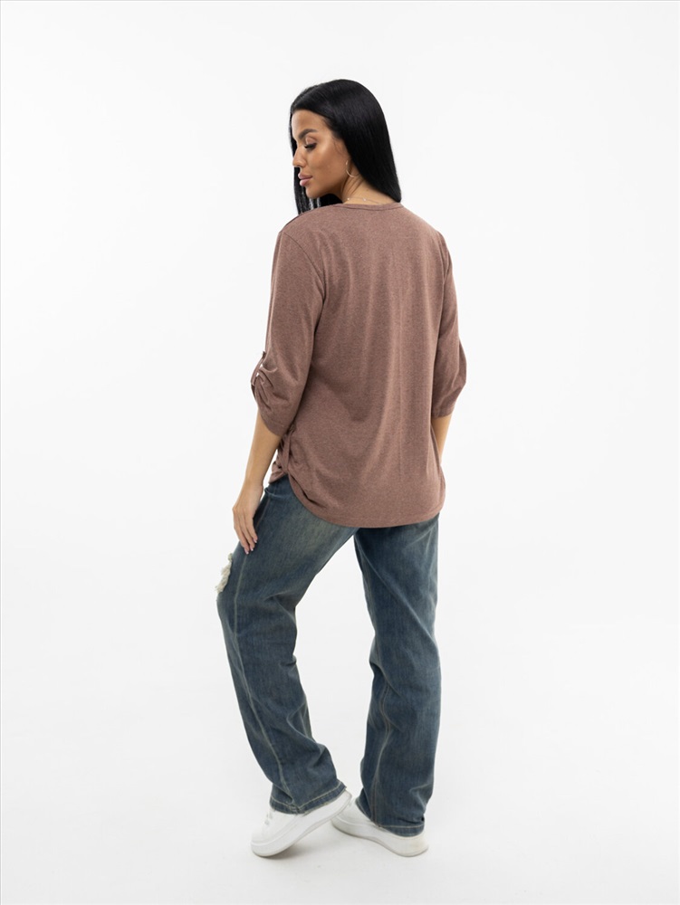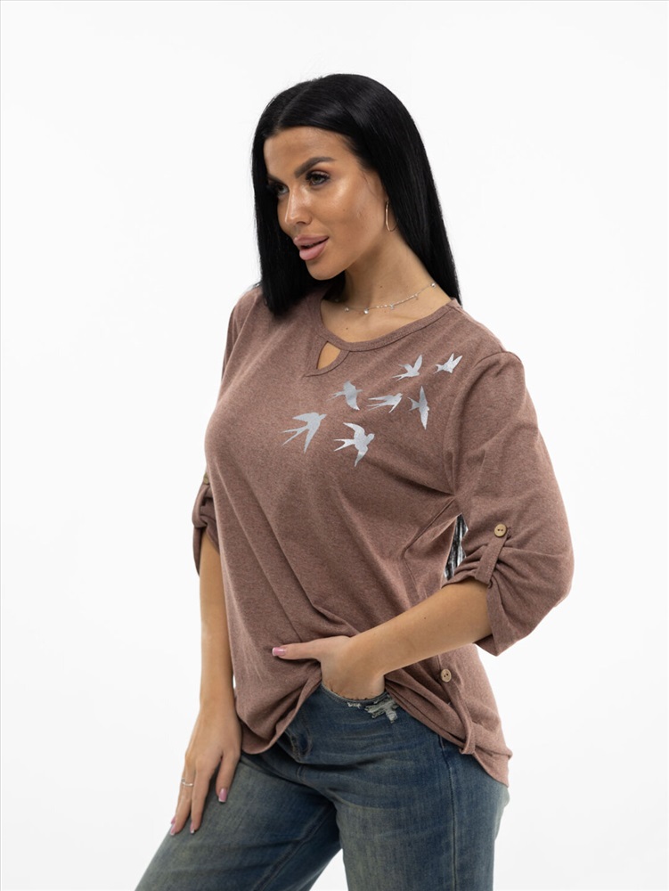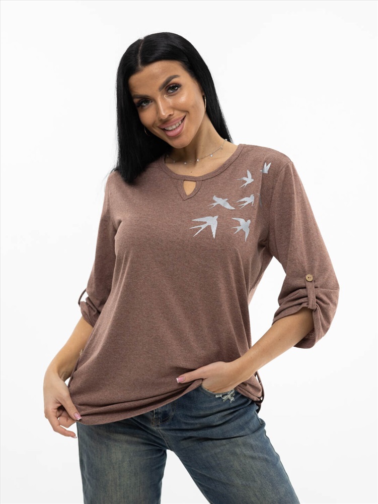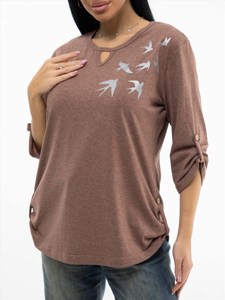 Женская туника из хлопка, выполнена из ткани премиум качества. Длина до уровня бедер - создаст правильный силуэт, рукав 3/4 подчеркнет изящество Ваших рук, а оригинальный вырез горловины привлечет внимание к зоне декольте. Правильный крой подчеркнет талию и подарит Вам ощущение комфорта.