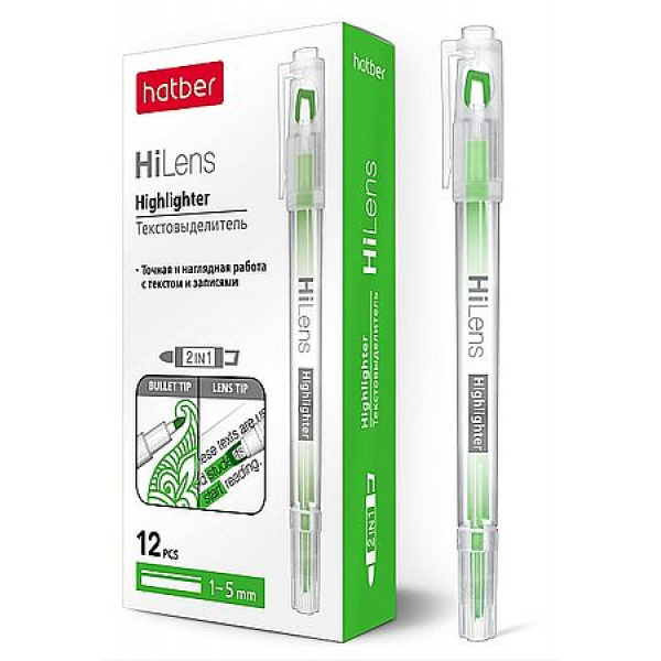 Наименование: Текстовыделитель двусторонний 1/5 мм "Хай-Ленс" зеленый" (060858) Хатбер Упаковка: 1\ 12\ 144 Страна: Китай Производитель: Хатбер min цена: 16,02 руб.