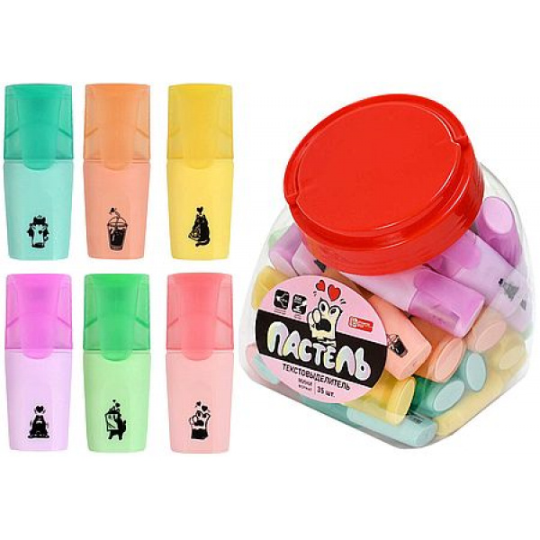 Текстовыделитель ассорти, цвет: бирюзовый, ванильный, лавандовый, мятный, персиковый, розовый, 72х27х17 мм, материал корпуса: полипропилен, форма наконечника: скошенная, материал наконечника: фибра (полиэтилен), УФ-печать).