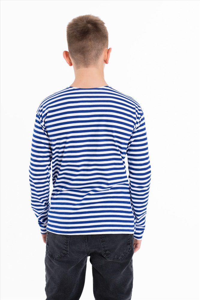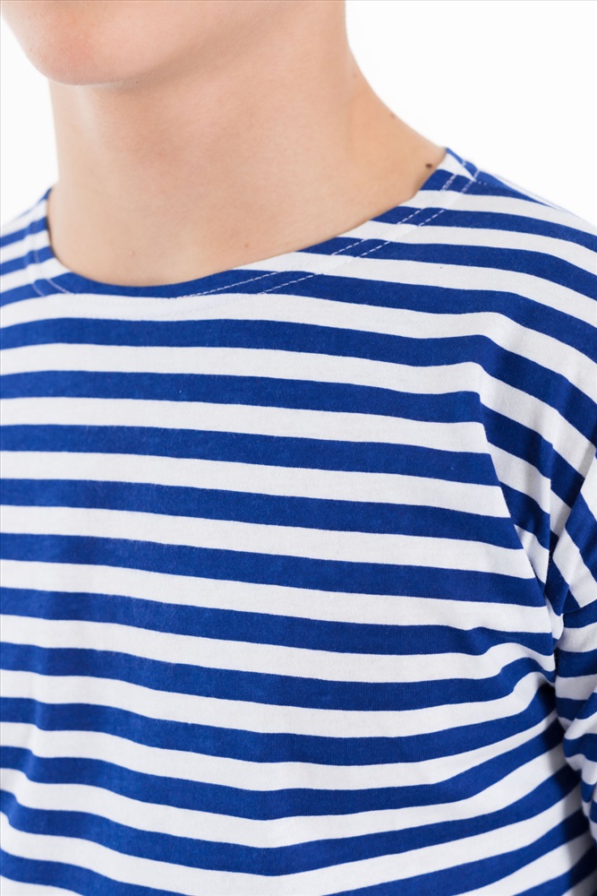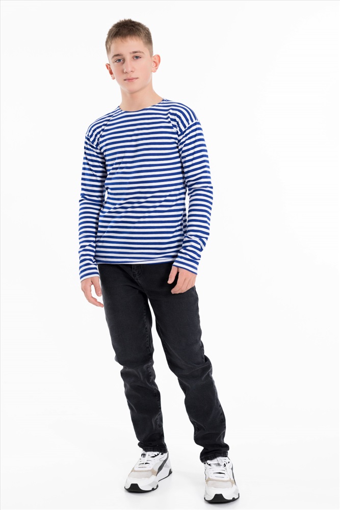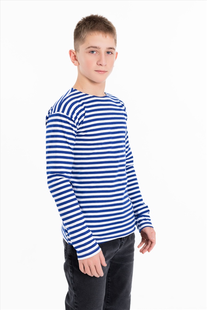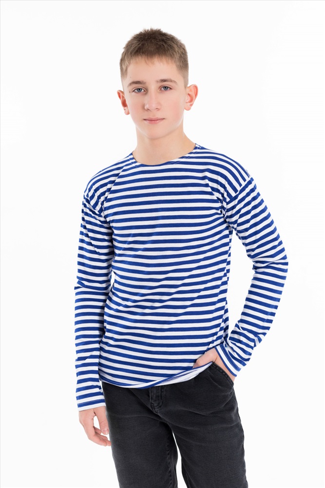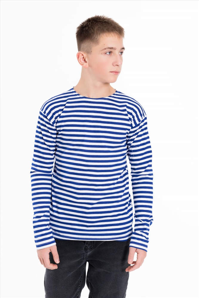 Цвет Номенклатуры: васильковый Тельняшка детская с длинным рукавом выполнена х/б полотна.
