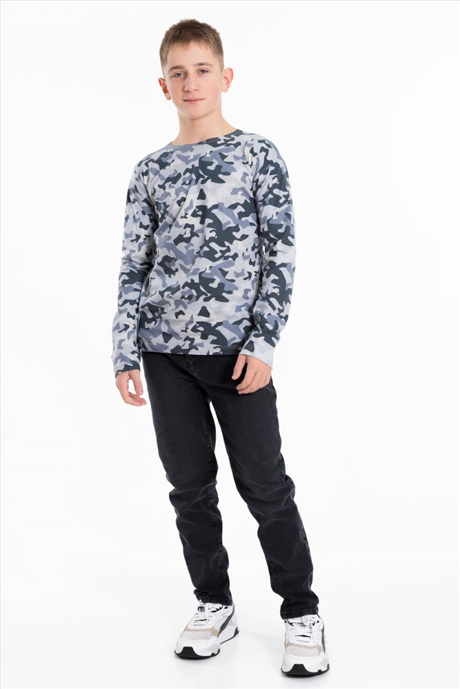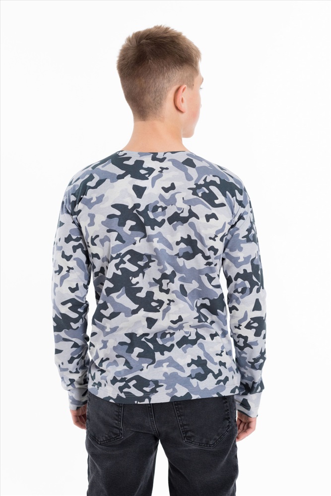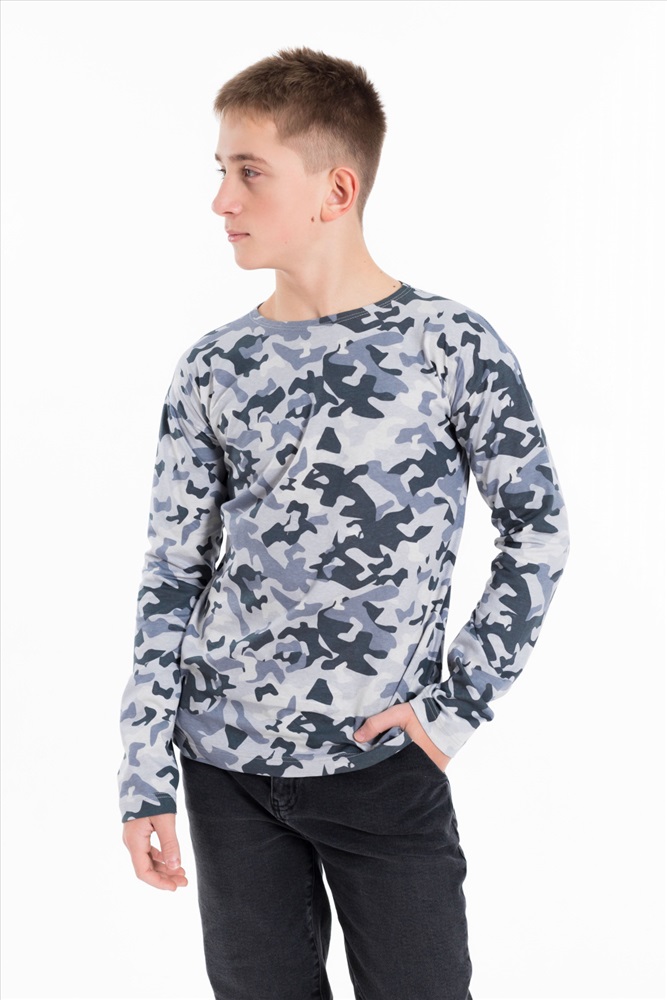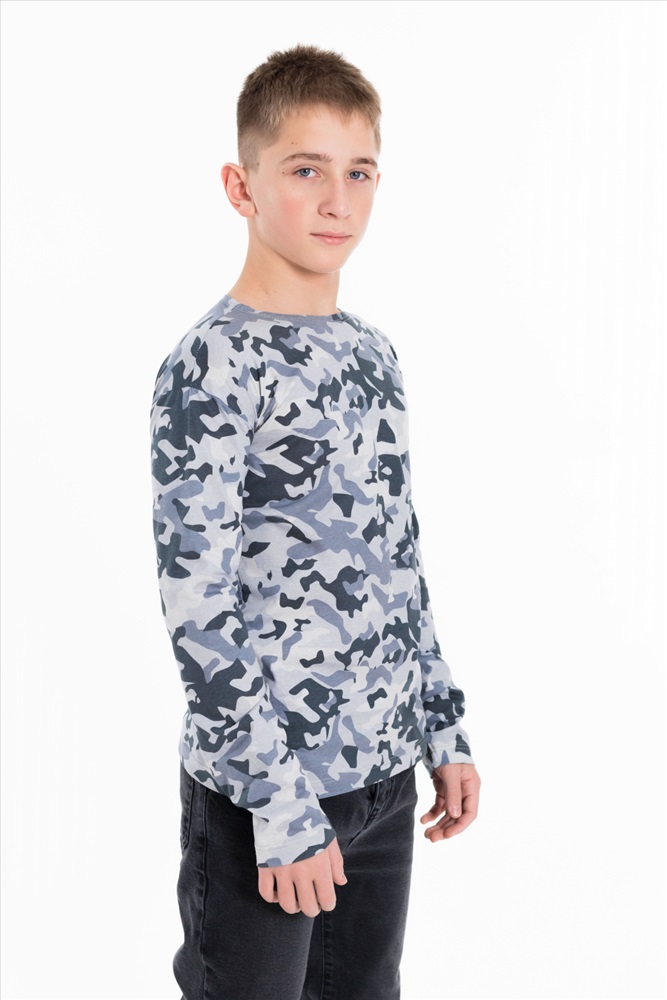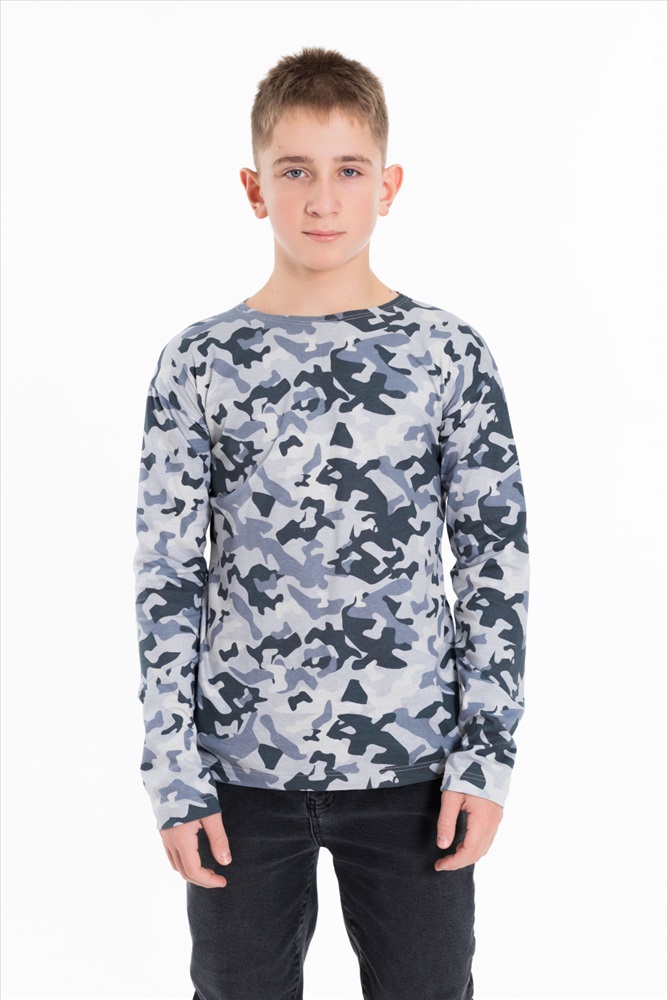 Сезон: Всесезонный Силуэт: Прямой Состав: Хлопок 100% Цвет Номенклатуры: разноцветный Тельняшка детская с длинным рукавом выполнена из х/б полотна (расцветка "камуфляж"). Комментарии к товару