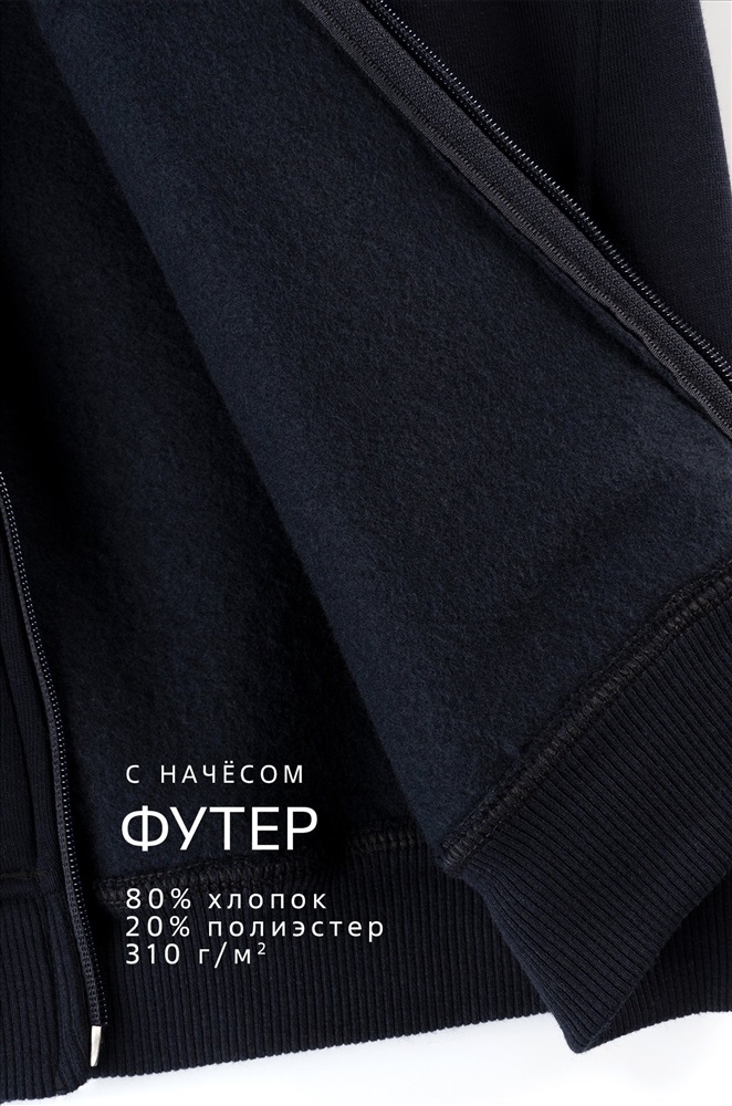 Бренд: Happyfox Страна: Турция Состав: 80% хлопок, 20% полиэстер Материал: Футер трёхнитка начёс Плотность ткани: 310 г/м2 Начес: Да Цвет: т.синий