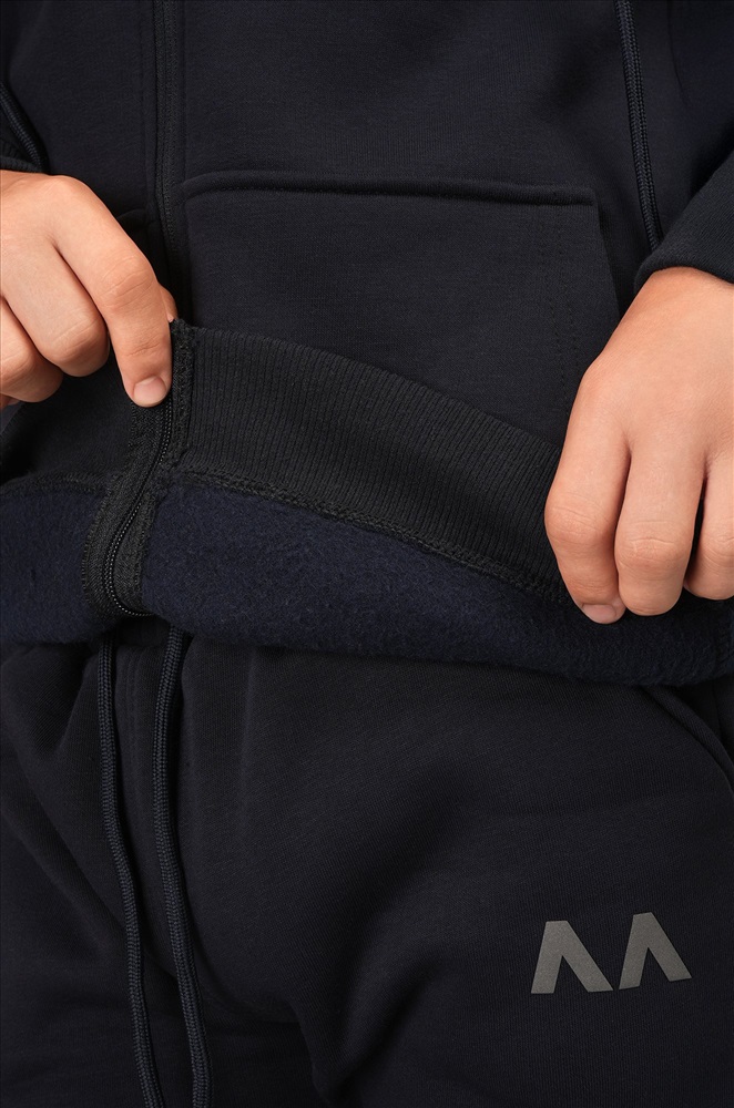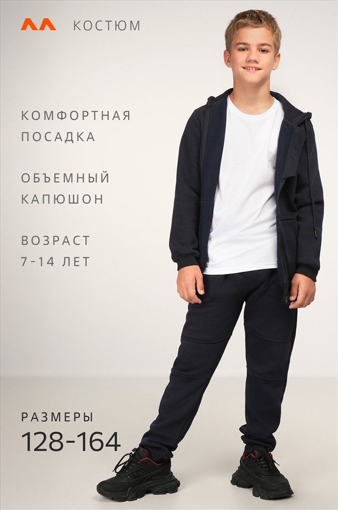 Преимущества: — теплый спортивный костюм для мальчиков и девочек выполнен из плотного футера трехнитки с начесом; — детский костюм с толстовкой на молнии дарит уют и защиту в холодную погоду; — молния дополнена декоративной планкой с брендированной надписью; — хлопковый костюм для детей и подростков приятен к телу, хорошо тянется и сохраняет форму после стирок; — утепленный костюм с брюками-джоггерами не стесняет движений; — эластичные манжеты на рукавах и штанинах защищают от ветра и удерживают тепло; — капюшон регулируется шнурками; — светоотражающие элементы делают ребенка заметным в темное время суток, повышая безопасность; — демисезонный темно-синий костюм идеально подходит для зимы и осени. С трикотажным костюмом легко создавать осенние и зимние образы в уличном стиле и стиле спорт кэжуал.