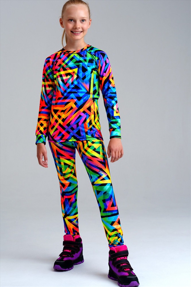 ID товара: 1031452 Сезон: Демисезон Длина: Полная Фасон: Облегающий Рукав: длинные Крой брючин: Облегающий Рисунок: геометрия Декоративные элементы: Принт Основная ткань: Полиэстер Страна бренда: Германия Страна производства: Китай Термокомплект трикотажный для девочек: брюки, толстовка для эпизодического использования. Комментарии к товару