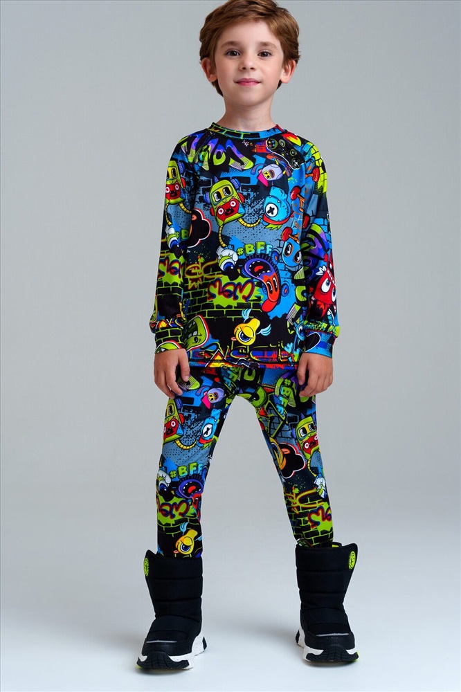 ID товара: 1031559 Состав: 88% Полиэстер, 12% Эластан Сезон: Демисезон Длина: Полная Фасон: Облегающий Рукав: длинные Крой брючин: Облегающий Рисунок: Фантазийный Декоративные элементы: Принт Основная ткань: Полиэстер Страна бренда: Германия Страна производства: Китай Термокомплект трикотажный для мальчиков: брюки, толстовка для эпизодического использования. Комментарии к товару