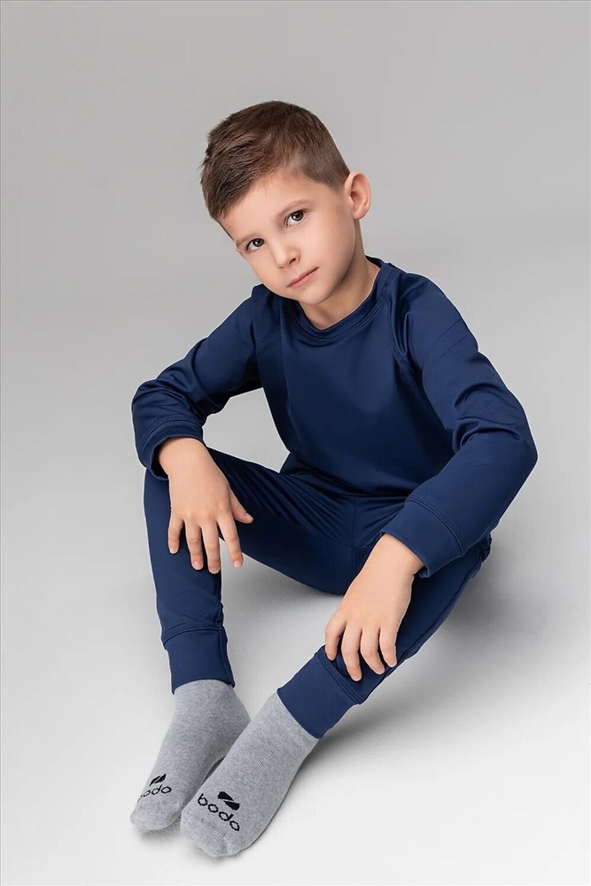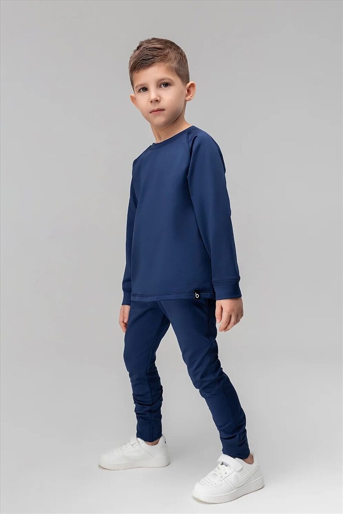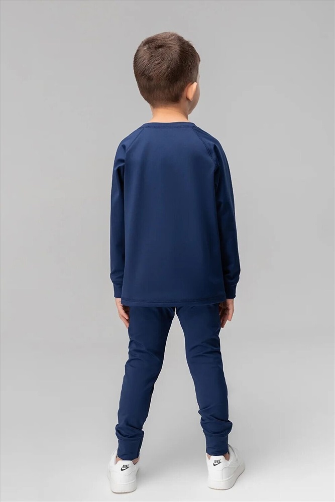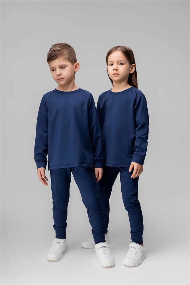 Термокостюм детский. Свитшот: рукава на манжетах, полуприлегающий покрой. Брюки, детали: прилегающий покрой, пояс - эластичная резинка, зауженный низ, без застежек, без карманов. Состав: термобифлекс 100% полиэстер