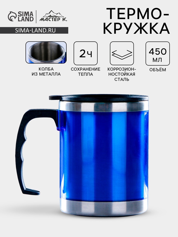 Термокружка "Мастер К" 450 мл (0.45 л) это яркое решение для любителей чая, кофе, травяных, ягодных и фруктовых заварок. Она позволяет не только согреться горячим кофе, чаем, матчей, какао, но и идеально подходит для прохладных напитков: чай со льдом, смузи или айс-кофе, которые вы можете взять с собой куда угодно.