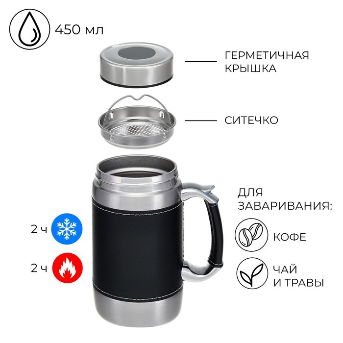 Поддерживает температуру горячих и холодных напитков в течение 2 часов.