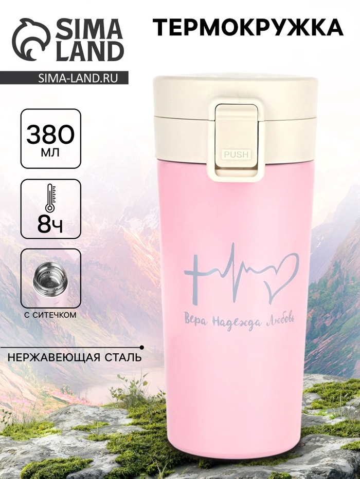 Габариты: 19 x 8 x 8 Страна: Китай В боксе: 50 шт Состав: Нержавеющая сталь, пластик, силикон Материалы: нержавеющая сталь, пластик, силикон Фасовка: по 1 шт Индивидуальная упаковка: Картонная коробка Сертификат: Не подлежит сертификации Цвет: Розовый Время сохранения тепла/холода, ч: 8 Объём, мл: 380 Материал корпуса: Нержавеющая сталь Рисунок: Да Крышка: Да Тематика праздника: Универсальная тематика Материал: Пластик Материал колбы: Металл Особенности: Вакуумный Термокружка является незаменимым атрибутом для всех любителей активного отдыха, её удобно брать с собой в поездку на автомобиле и мини путешествия на природу. Классическая модель кружки выполнена из нержавеющей стали, которая не взаимодействует с содержимым и не меняет его состава, запаха или вкуса. Элементы кружки обладают высокой прочностью, герметичная крышка позволит не беспокоиться о протекании напитков. Благодаря компактным размерам и эргономичному дизайну, она легко помещается в сумку или рюкзак, что делает её идеальным выбором для путешествий, прогулок, походов и активного образа жизни. Комментарии к товару