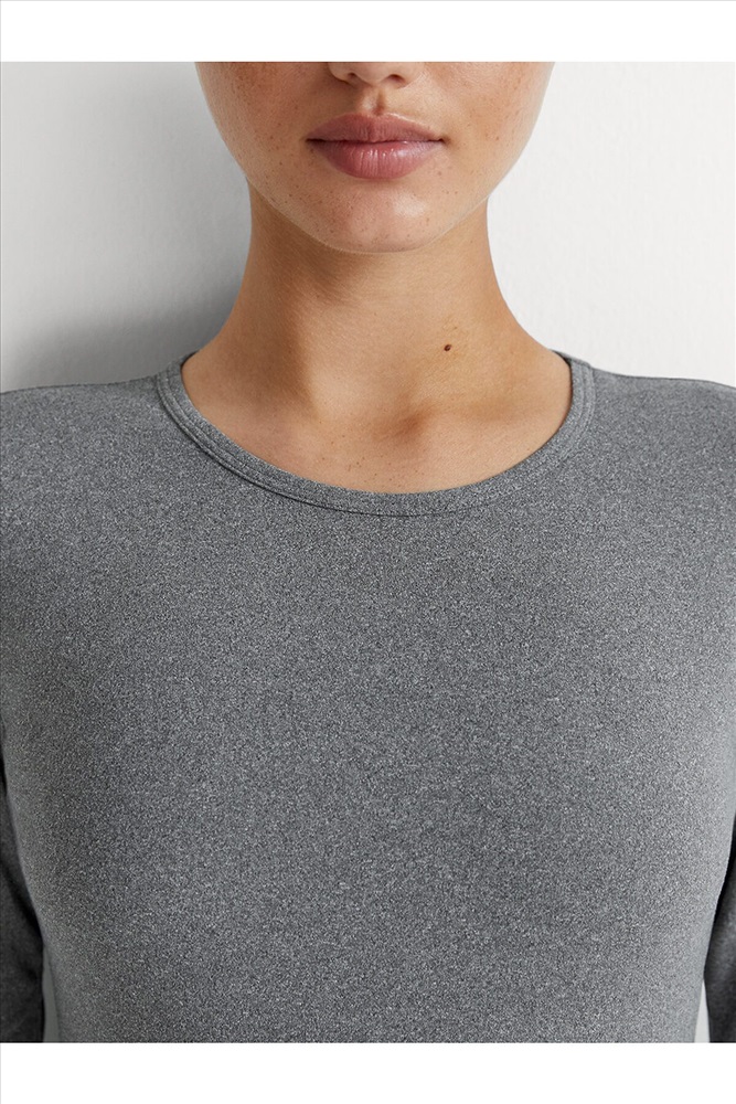 Женский лонгслив с длинным рукавом. Изготовлен из современного технологичного ультратонкого, легкого и при этом прочного материала, который обладает высокими теплоизоляционными и влагоотводящими свойствами, создает терморегулирующий эффект, деликатно облегает и приятно ощущается на теле благодаря мягкой бархатистой текстуре. Обеспечивает максимальную свободу движения. Можно носить в качестве дополнительного согревающего слоя. Подходит для повседневного использования. Рекомендовано носить при T от +10°С до -10°С.