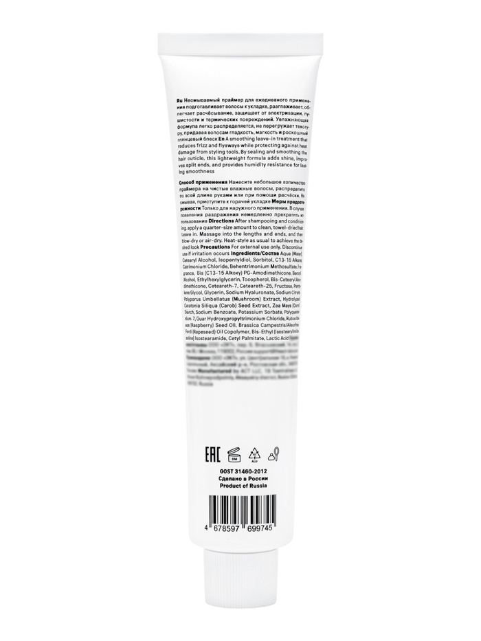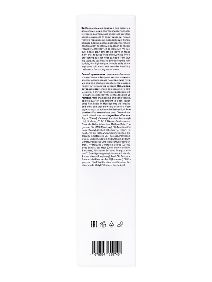 Способ применения: Нанесите небольшое количество праймера на влажные волосы, равномерно распределив по всей длине. Затем приступайте к сушке феном или использованию утюжка/щипцов. Можно использовать как самостоятельное средство перед укладкой или в комбинации с другими средствами стайлинга. Преимущества:
