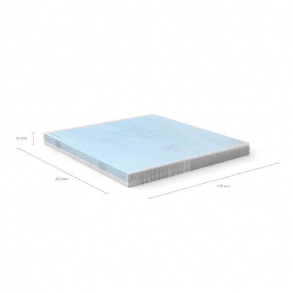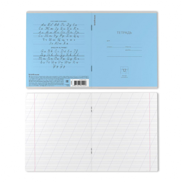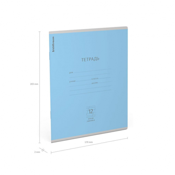 Тетрадь школьная ученическая формата А5+ (170х203 мм). Обложка из высококачественного мелованного картона плотностью 170 г/м2. В блоке 12 листов в косую линейку с полями. Бумага офсетная плотностью 60 г/м2. Цвет линовки - синий. Скругленные уголки обложки и блока. Тип скрепления - скоба. Тетради упакованы в термоусадочную пленку по 10 штук.