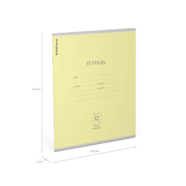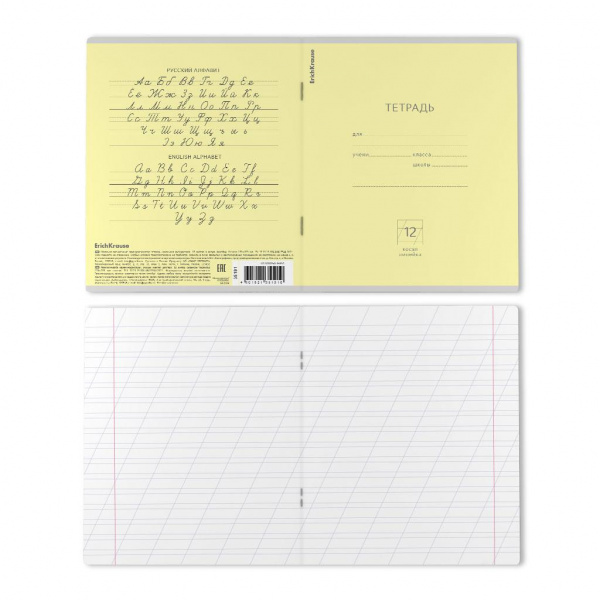 Тетрадь школьная ученическая формата А5+ (170х203 мм). Обложка из высококачественного мелованного картона плотностью 180 г/м2. В блоке 12 листов в косую линейку с полями. Бумага офсетная плотностью 60 г/м2. Цвет линовки - синий. Скругленные уголки обложки и блока. Тип скрепления - скоба. Тетради упакованы в термоусадочную пленку по 10 штук.