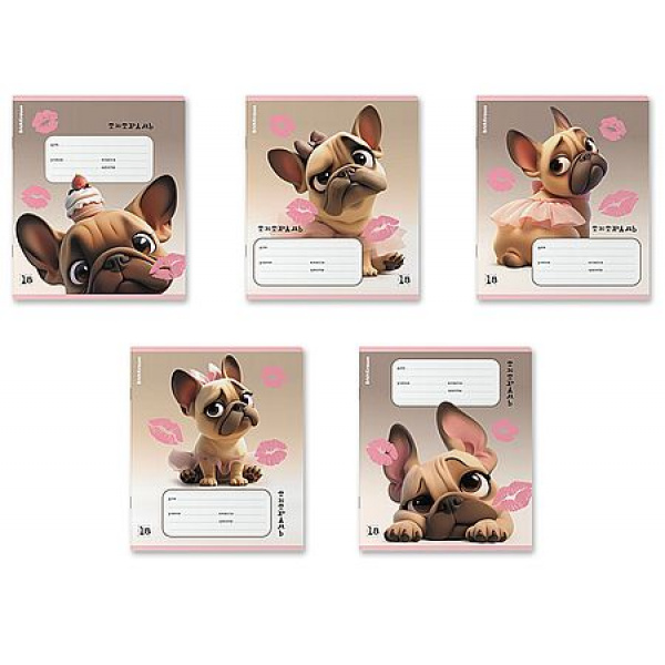 Тетрадь школьная ученическая ErichKrause Frenchie, 18 листов, клетка, выборочный УФ-лак (в плёнке по 10 штук) MIX-PACK