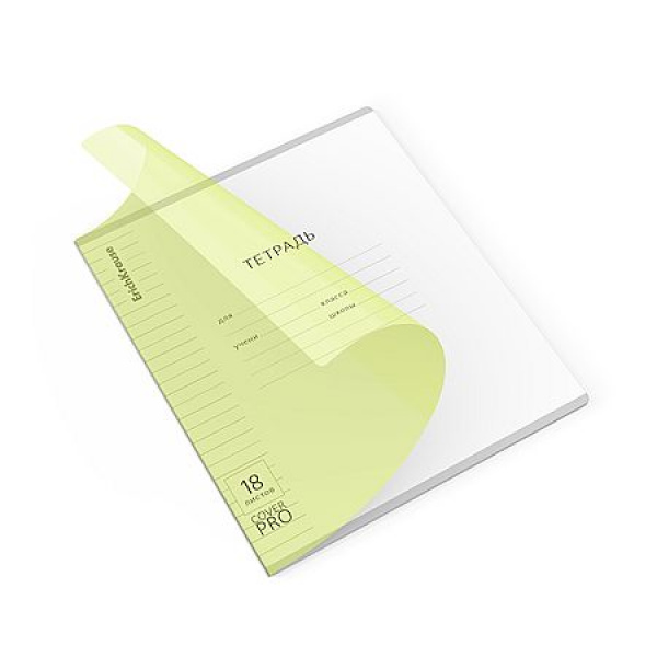 Тетрадь школьная ученическая формата А5+ (170x203 мм). Двойная обложка: внешняя выполнена из высококачественного износостойкого цветного пластика с фактурой «апельсиновая корка», внутренняя — из офсетной бумаги. В блоке 18 листов в линейку. Бумага офсетная плотностью 60 г/м2. Цвет линовки — синий. Скругленные уголки обложки и блока. Тип скрепления — скоба. Тетради упакованы в термоусадочную пленку по 10 штук.
