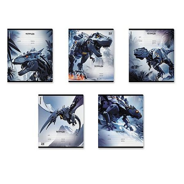 Тетрадь школьная ученическая формата А5+ (170х203 мм). Обложка из высококачественного мелованного картона плотностью 170 г/м2. В блоке 24 листа в линейку с полями. Бумага офсетная плотностью 60 г/м2. Цвет линовки - синий. Скругленные уголки обложки и блока. Тип скрепления - скоба. Тетради разного дизайна упакованы в термоусадочную пленку по 10 штук.
