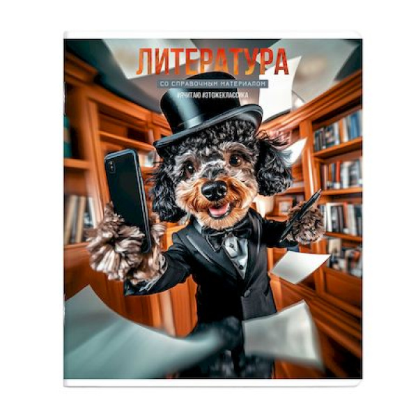 Тетрадь предметная арт. 69847/ 16 «СЕЛФИ» ЛИТЕРАТУРА /48 л., А5+, вн.блок - линия, белый офсет, мягкий переплёт (2 скобы), облож.- мелованный картон 190 г/м?, выборочный ТВИН УФ-лак, Подкладные листы со справочной информацией/