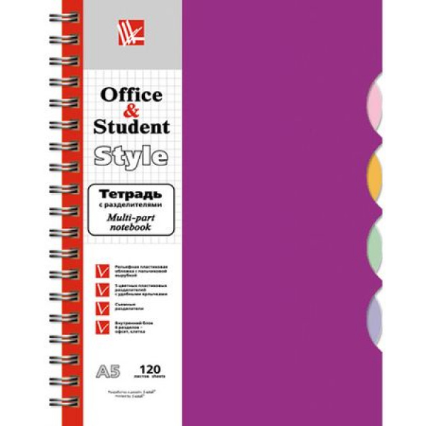 Наименование: Тетрадь 120л клетка на спирали 5 цв. разделителя пластиковая обложка "Лиловая" ТПР512025 Listoff Упаковка: 1\ 20 Страна: Китай Производитель: Listoff min цена: 176,64 руб.