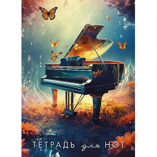 Тетрадь для нот, 16 листов, формат А4, плотность 60 гр/м2. Внутренний блок - высококачественная белая офсетная бумага. Линовка блока - нотная строка черного цвета. Обложка - офсетная бумага, полноцветная печать. Крепление - скоба.