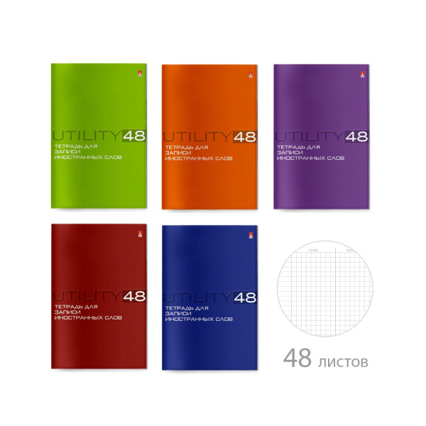 В эту серию входят тетради с блоками различной листности, а также тетради для записи иностранных слов. Обложки моделей UTILITY выпускаются в современном удобном формате. В качестве материала подобран высококачественный плотный картон, тонированный в массе. Лаконичный и вместе с тем стильный дизайн создан с помощью насыщенных тонов картона, который представлен в пяти цветовых решениях - красный, салатовый, оранжевый, фиолетовый и синий. В тетради для записи иностранных слов каждая страница поделена на три столбца, куда вписываются слово, его транскрипция и перевод.