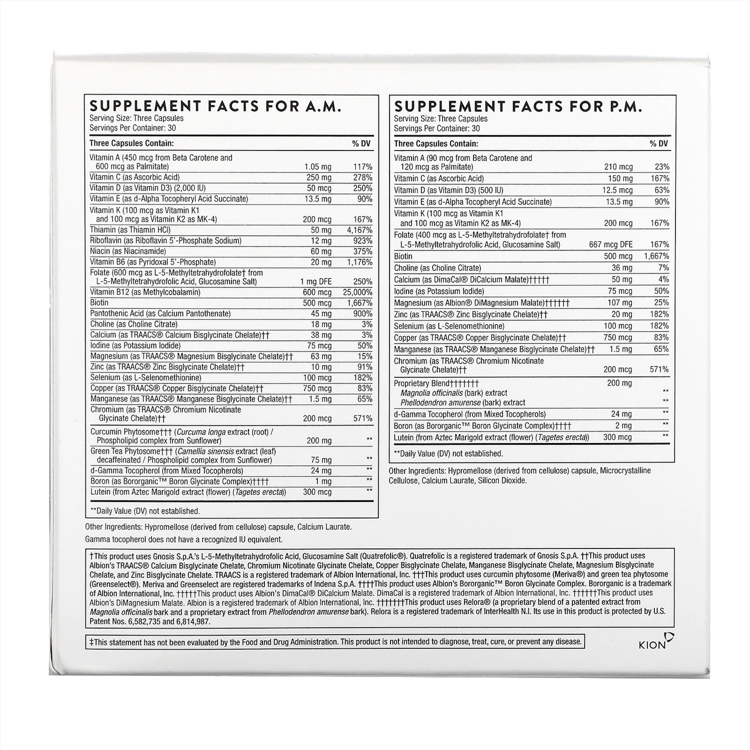 **Daily Value (DV) not established. †This product uses Gnosis S.p.A.'s L-5-Methyltetrahydrofolic Acid, Glucosamine Salt (Quatrefolic®). Quatrefolic is a registered trademark of Gnosis S.p.A. ††This product uses Albion's TRAACS® Calcium Bisglycinate Chelate, Chromium Nicotinate Glycinate Chelate, Copper Bisglycinate Chelate, Manganese Bisglycinate Chelate, Magnesium Bisglycinate Chelate, and Zinc Bisglycinate Chelate. †††This product uses curcumin phytosome (Meriva®) and green tea phytosome (Greenselect®). Meriva and Greenselect are registered trademarks of Indena S.p.A. ††††This product uses Albion's Bororganic™ Boron Glycinate Complex. Bororganic is a trademark of Albion International, Inc. †††††This product uses Albion's DimaCal® DiCalcium Malate. DimaCal is a registered trademark of Albion International, Inc. ††††††This product uses Albion's DiMagnesium Malate. †††††††This product uses Relora® (a proprietary blend of a patented extract from Magnolia officinalis bark and a proprietary extract from Phellodendron amurense bark).