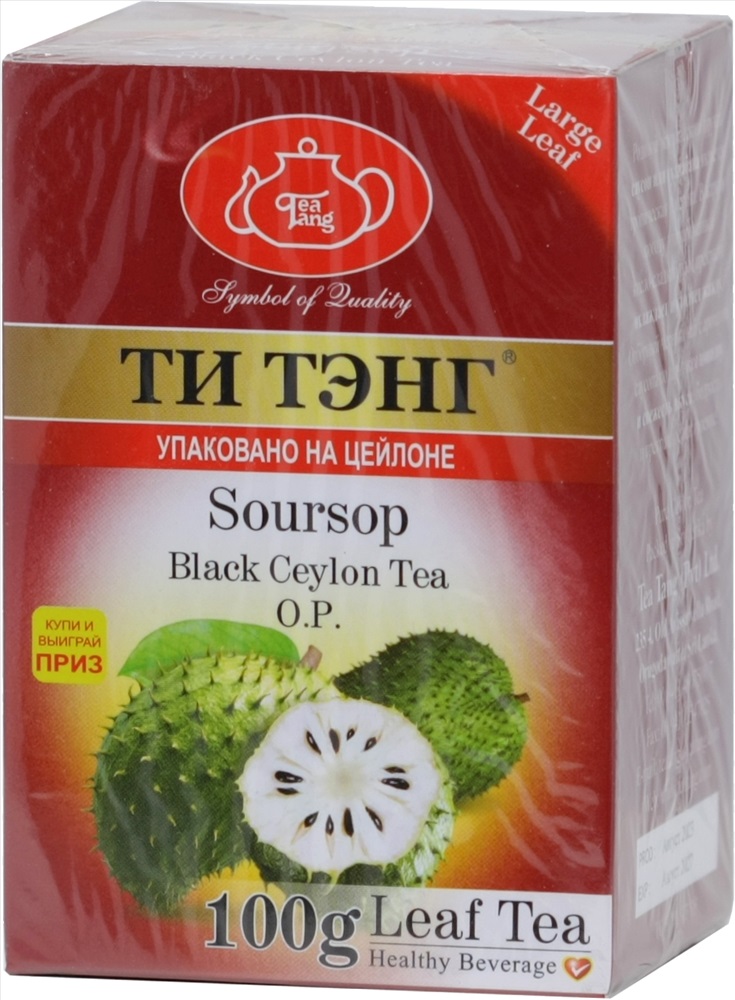 Родиной экзотического фрукта саусоп или гуанабана является тропическая Америка.В жаркую погоду этот ароматный кисло-сладкий плод прекрасно охлаждает и утоляет жажду.Отборный черный чай с ароматом саусопа подарит вам новизну и свежесть вкуса,бодрость и прекрасное настроение!Состав:чай черный байховый цейлонский крупнолистовой,ароматизатор натуральный и идентичный натуральному саусоп.