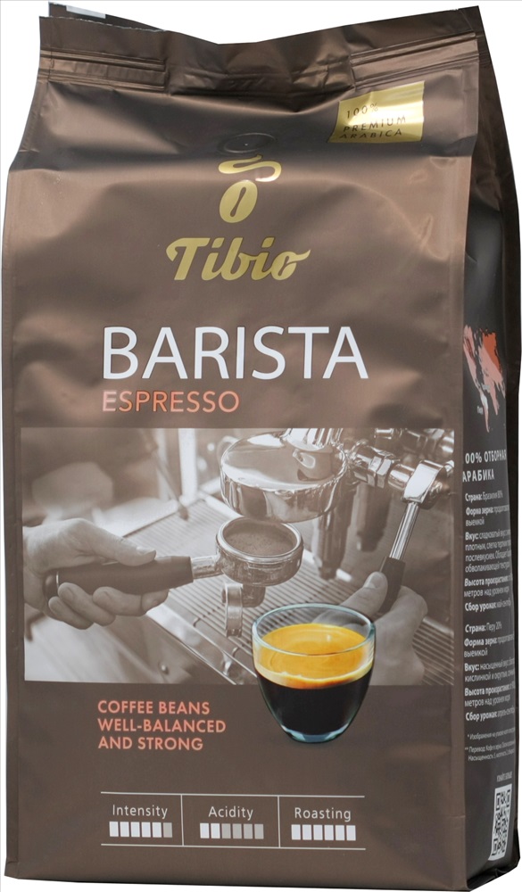 Кофе натуральный в зернах. Состав: арабика. Обжарка: темная.Только 100% отборная премиальная арабика с лучших плантаций Бразилии и Перу. Barista Espresso обладает характерным крепким и сбалансированным вкусом эспрессо, тонким ароматом с легкими ореховыми нотками и золотистой пенкой.