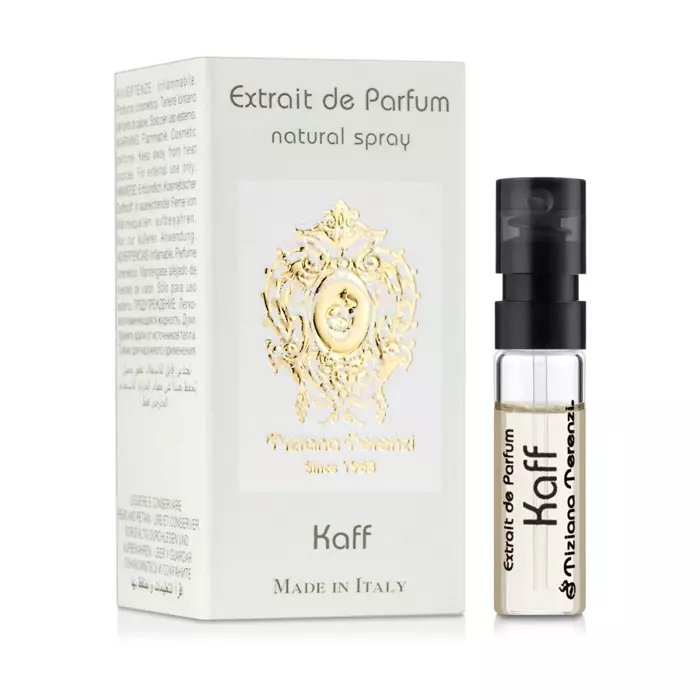 Kaff - изысканная парфюмерная вода с мускусным, древесно-цветочным ароматом для женщин и мужчин, созданная известным парфюмером Паоло Терензи в 2017 году и выпущенная под маркой его собственного бренда Tiziana Terenzi. Насыщенный аромат освежает прохладными цитрусовыми и душистыми цветочными нотами, мягко согревает теплыми и пряными оттенками, завораживает страстными мускусными и экзотическими древесными аккордами. Бархатные ноты белого ириса и розового перца дополнены в начале композиции свежим горьковато-пряным аккордом имбиря и смолисто-джиновым запахом можжевельника с цитрусовым, прохладным акцентом бергамота, которые гармонично переплетаются в сердце парфюма с нежным волнующим ароматом магнолии и дымного ириса, дополненные благородным оттенком кожи и бальзамическим тонким дыханием серой амбры. Чувственный шлейф парфюма насыщен смолистыми нотами белого кедра с влажным земляным акцентом ветивера и приятным сладковато-дымным запахом бобов-тонка с экзотическим сливочным аккордом сандалового дерева. Комментарии к товару