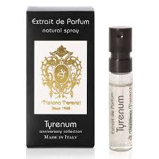 Ароматическая композиция Tyrenum начинает звучание с цитрусовой свежести калабрийского бергамота и бразильского апельсина, свежестью зеленого чая, медовыми нотами османтуса и сладостью карамели. В сердечном аккорде освежающий всплеск горьковато-соленых морских нот соединяется с пряным розовым и черным перцем и кардамоном. А завершает звучание парфюма Tiziana Terenzi Tyrenum древесный запах оливкового дерева и пачули, тонкий запах морской гальки, солоновато-смолистая серая амбра, нежная сладость ванили и волнующий мускус.
