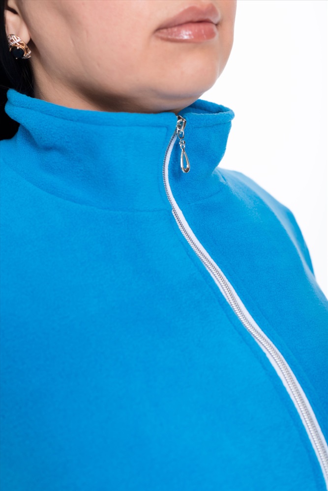 Застежка: Молния С капюшоном: Нет С карманами: Да Сезон: Зимний Силуэт: Прямой Состав: Хлопок 80% Полиэстер 20% Цвет Номенклатуры: аквамарин Женская толстовка из флиса в цвете аквамарин представляет собой уютную и стильную одежду для прохладных дней. Центральная застежка на молнию обеспечивает удобство одевания и снятия. Воротник-стойка придает изделию стильный вид. Рукава с манжетами внизу помогают сохранить тепло. У толстовки прорезные карманы по бокам, в которых можно хранить мелочи. Особенным акцентом является вышивка на рукаве, которая добавляет изюминку и индивидуальность данной модели. Эта женская толстовка идеально подойдет для повседневной носки, прогулок на свежем воздухе или активного отдыха. Нежный и мягкий флис обеспечит комфорт и уют в любое время года. Комментарии к товару