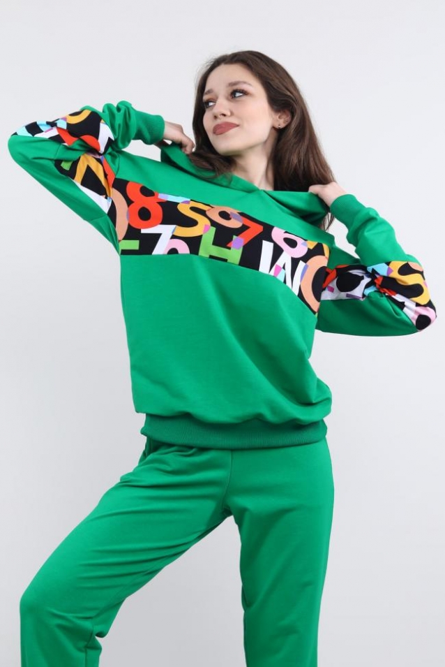 Толстовка с длинным рукавом в стиле оверсайз. Данная модель выполнена из трикотажного полотна футер с лайкрой. Горловина, манжеты по рукавам и низ отделаны трикотажным эластичным полотном кашкорсе. На изделии присутствуют вставки из цифровой печати. Отлична модель для приятного отдыха и прогулок.