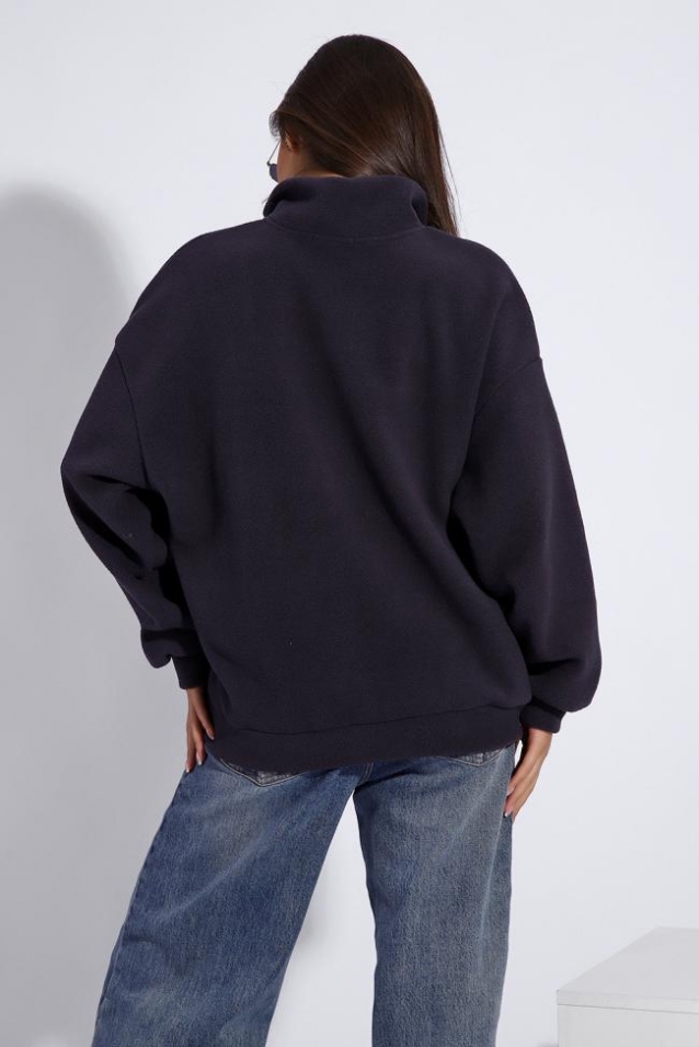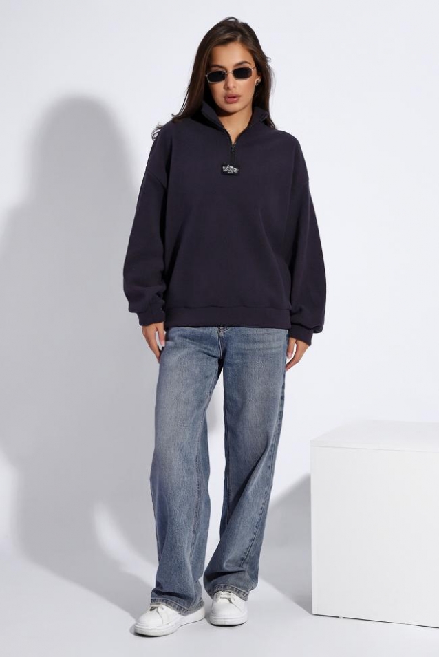 Уютная теплая толстовка из мягкого флиса. Воротник стойка, застежка молния-трактор, контрастная нашивка. Универсальный свободный крой оверсайз. Манжеты на рукавах и по низу изделия. На модели изделие 46-48 размера (параметры модели: рост 167 см., ОГ 85 см., ОТ 60 см., ОБ 89 см.)