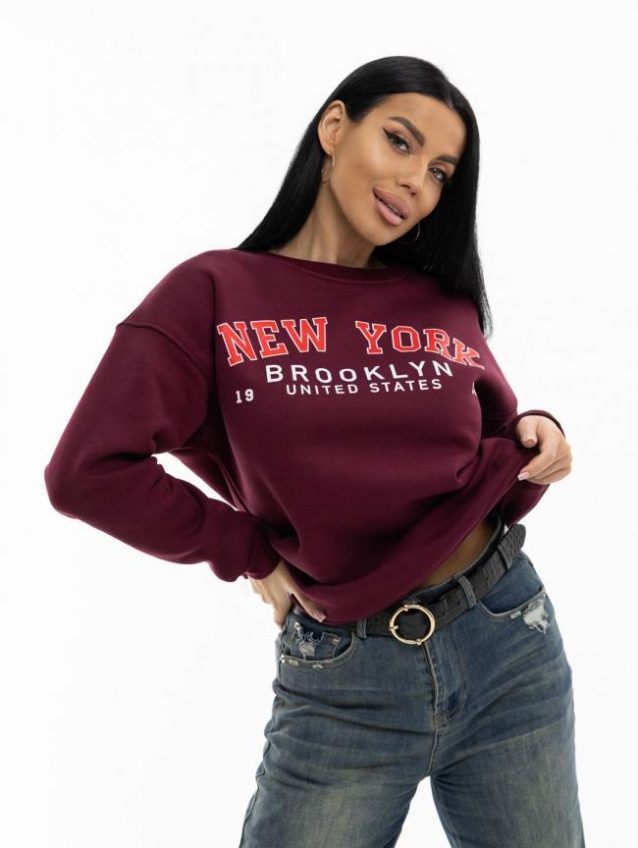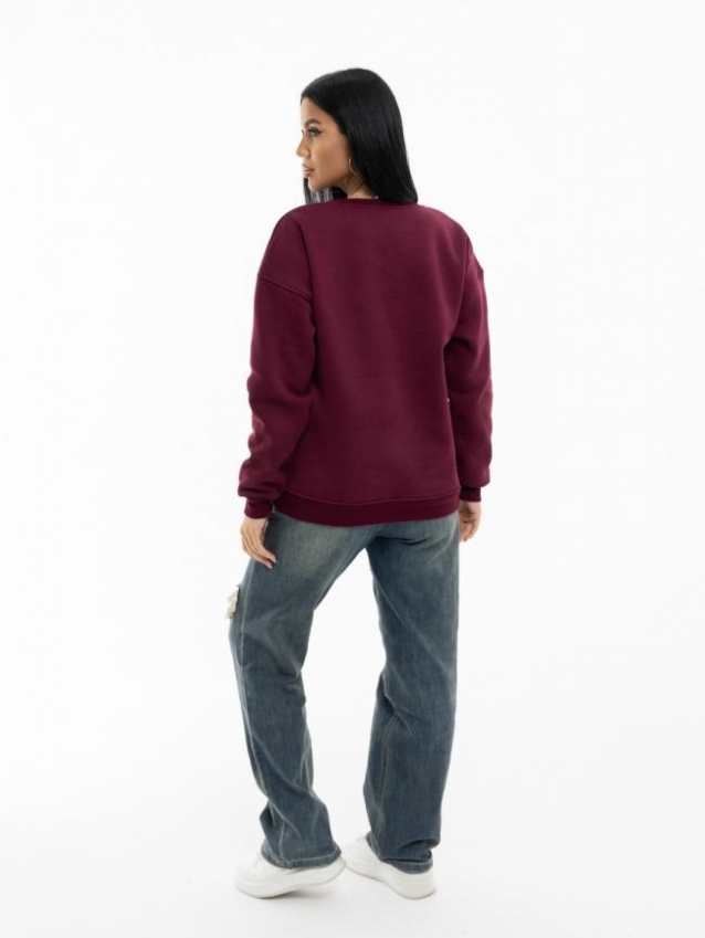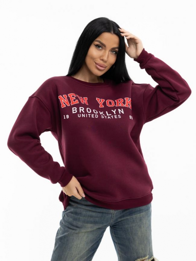 Толстовка женская из футера с начесом, О-образная горловина, длинный рукав, длина до середины бедра. Горловина, манжена и пояс толстовки выполнен из кашкорсе. Спереди износостойкий принт. Комментарии к товару