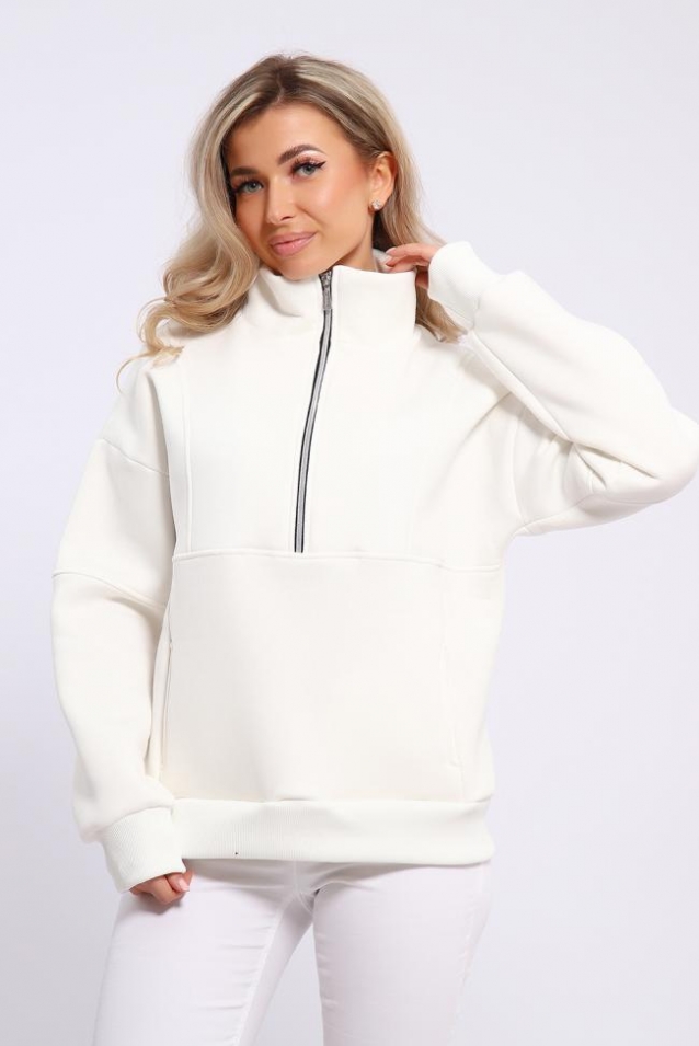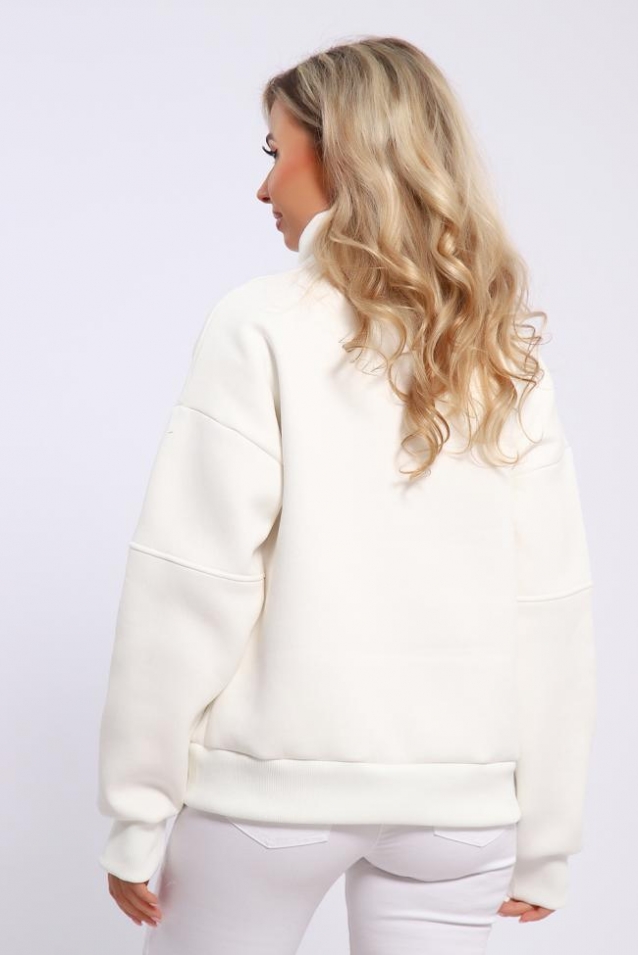 Толстовка свободного силуэта с длинными рукавами на спущенном плече. Рукава на манжетах. Воротник - стойка с застежкой на молнию.