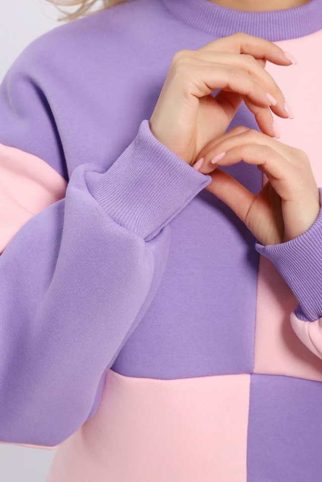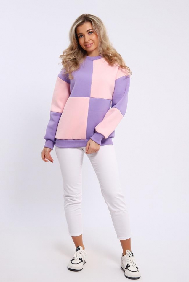 Толстовка с рукавами на манжетах и круглым вырезом горловины. Свободный крой. Рукава на спущенном плече.