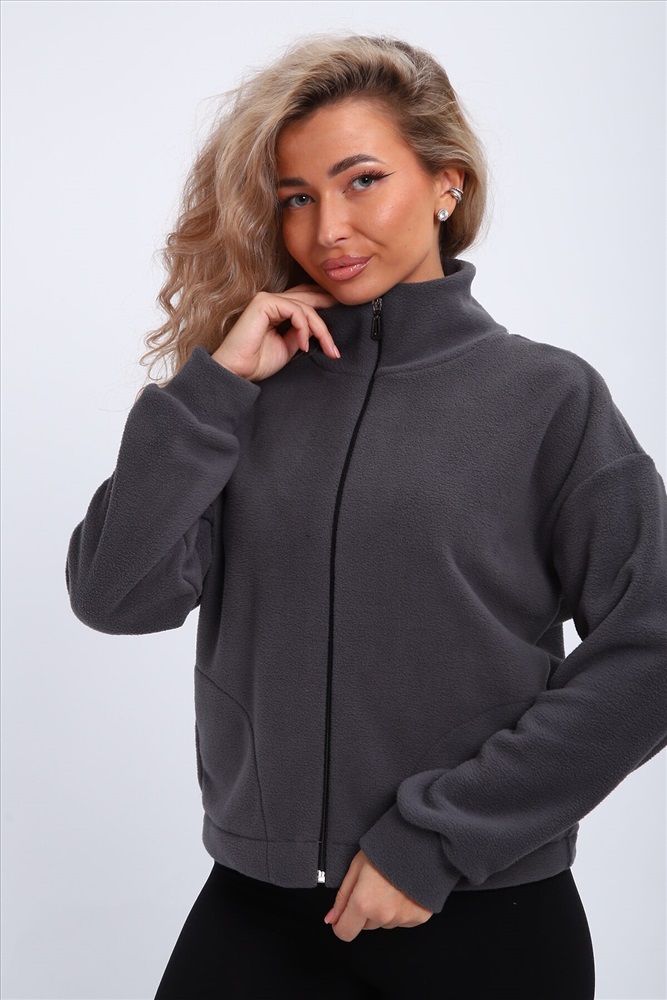 Теплая женская кофта на молнии с карманами. Длинный рукав на манжете, воротник стойка.