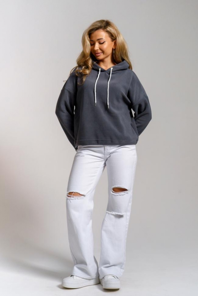 Женская толстовка выполнена из флиса высокого качества. Флис - ткань с ворсистой поверхностью, что позволяет эффективно сохранять тепло. Материал прочный, эластичный, влагостойкий. Хорошо пропускает влагу, при этом не впитывает ее. По теплостойкости превосходит шерсть, но намного легче. Воздухопроницаемая гигроскопичная ткань создает для тела комфортный микроклимат. Материал гипоаллергенный, подходит для изготовления одежды детям, в том числе новорожденным. Изделия из флиса легкие, не мнутся, не деформируются, не вытягиваются. В такой одежде удобно и комфортно. Эластичность материала позволяет легко двигаться. Толстовка с капюшоном и шнурком. Линия плеча спущена, длинный рукав. По низу толстовки имеется резинка с фиксатором, с помощью которой Вы можете собрать изделие как вам хочется и нравится. Свободный крой прекрасно будет смотреться на дамах с любыми формами. Толстовка такого плана представлена в широкой размерной сетке, что позволяет выбрать её как девушке, так и женщине. Однотонная толстовка модных расцветок будет удачным выбором для поездок в отпуск, на пикник, для школы, для активного отдыха и прогулок по городу. Будет гармонично сочетаться с брюками, джинсами, кроссовками и ботинками. Используя эту модель в качестве домашней одежды Вы поймёте, что это именно тот самый идеальный вариант, в котором будете себя чувствовать удобно, комфортно и современно. Толстовка - это настоящая находка для тех, кто ценит свою индивидуальность! Ориентируясь по таблице замеров, обратите внимание, что замеры длины рукава проводились от точки основания шеи.