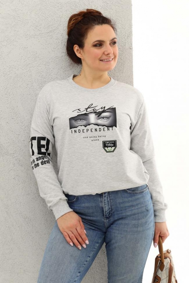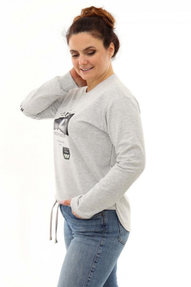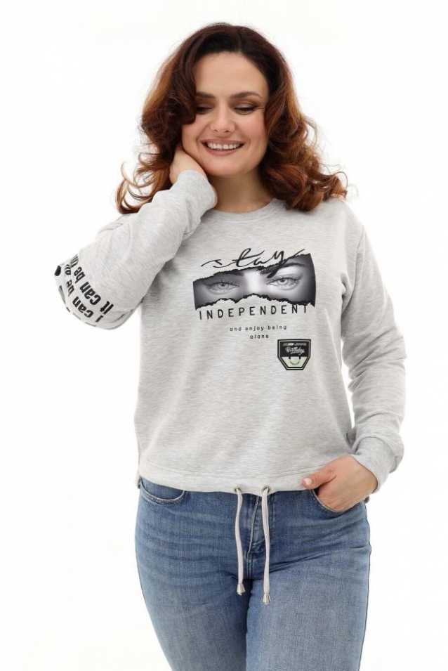 Толстовка оверсайз - трендовая модель, которая прекрасно впишется в любой модный лук. Толстовка длинной до середины бедра по полочке и удлиненной спинкой, со спущенной линией плеча. Стильная черно-белая печать. Манжеты и горловина из кашкорсе в тон ткани. Низ изделия регулируется кулиской.