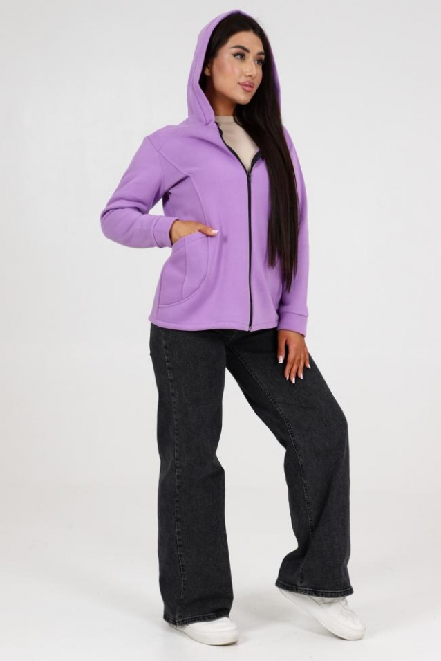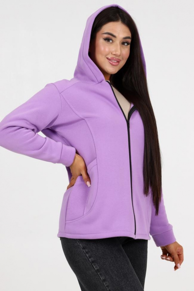 Толстовка женская утепленная на молнии с капюшоном. Длинный рукав на манжете, на передней полочке рельефы, в которых расположены карманы. Практично и удобно. В бежевой расцветке возможны вставки коричневого и рыжего цветов.
