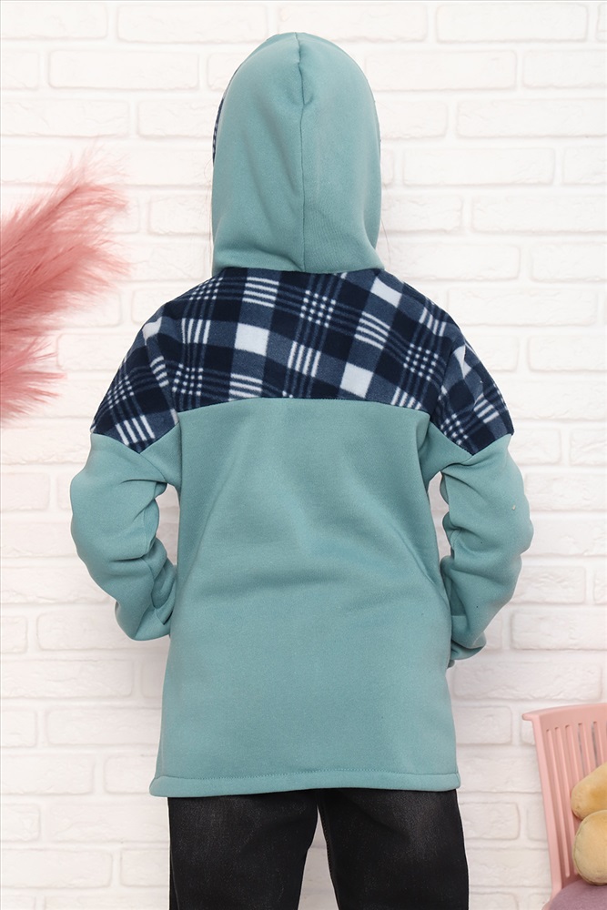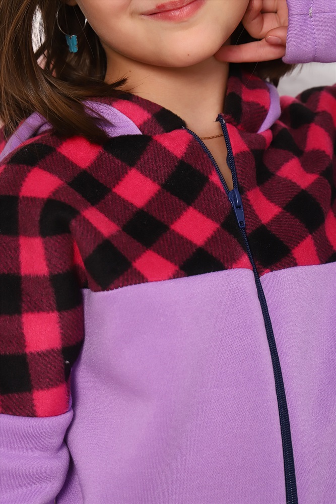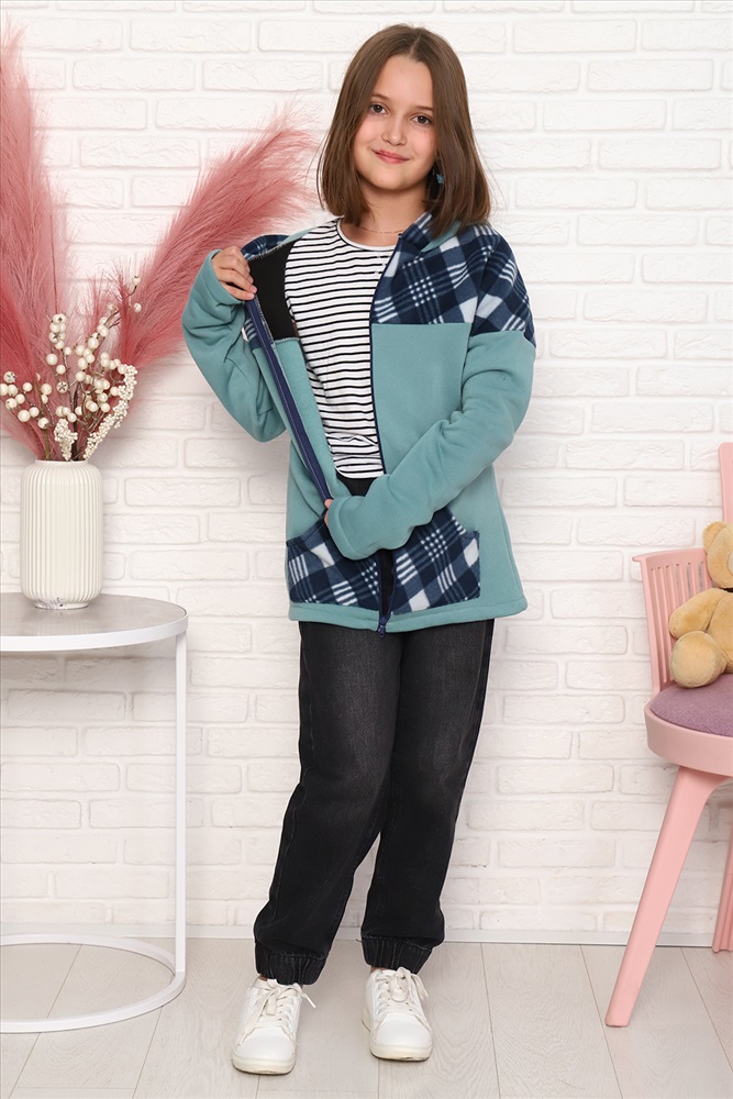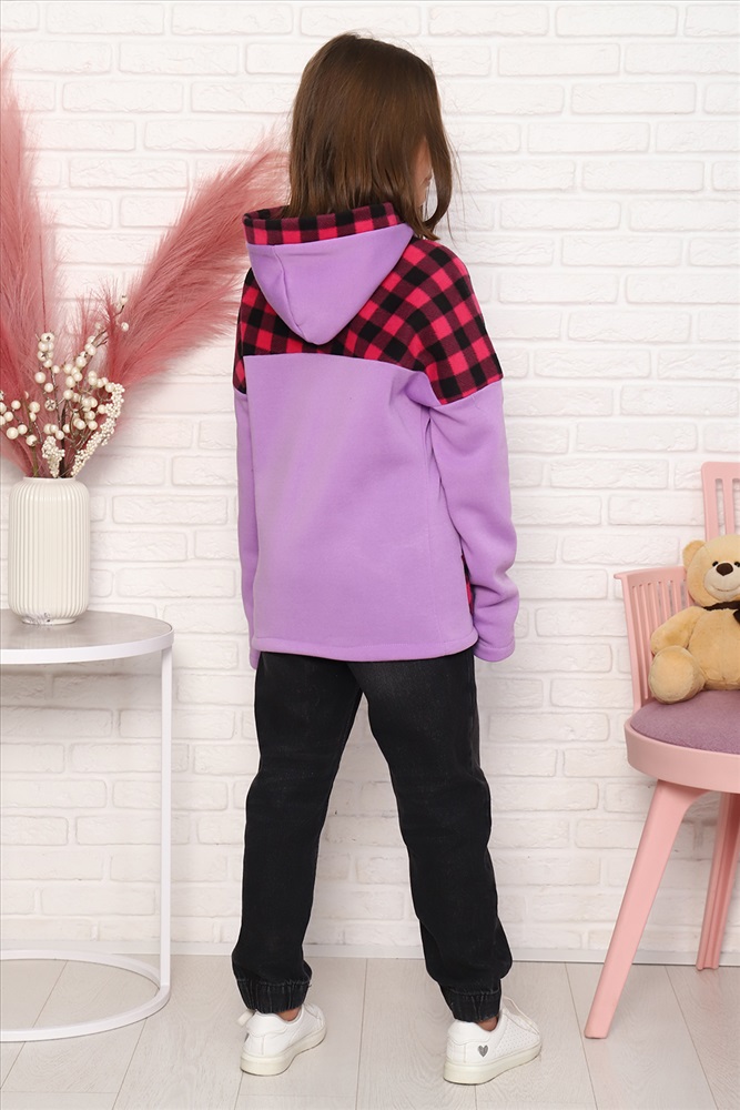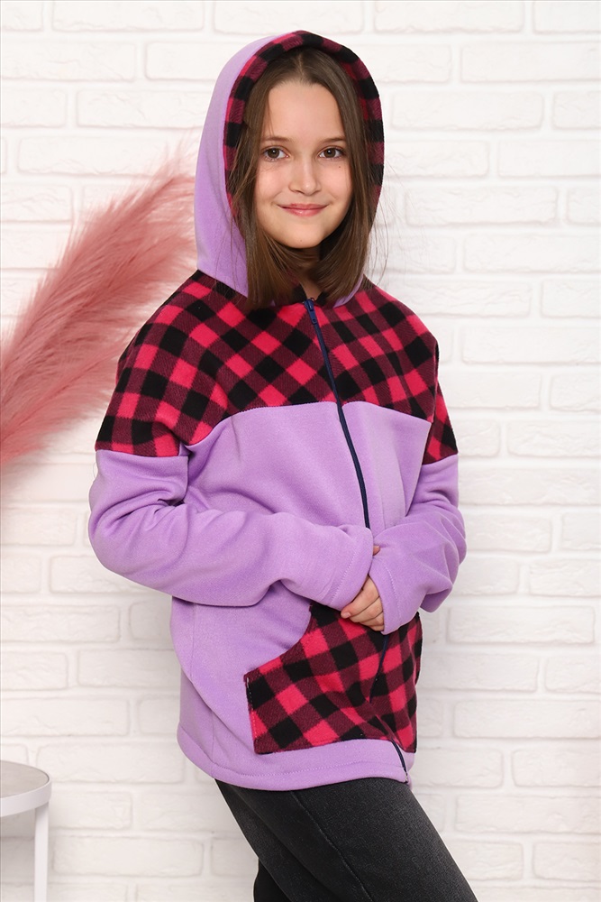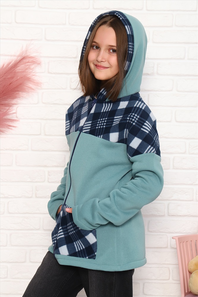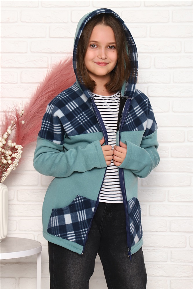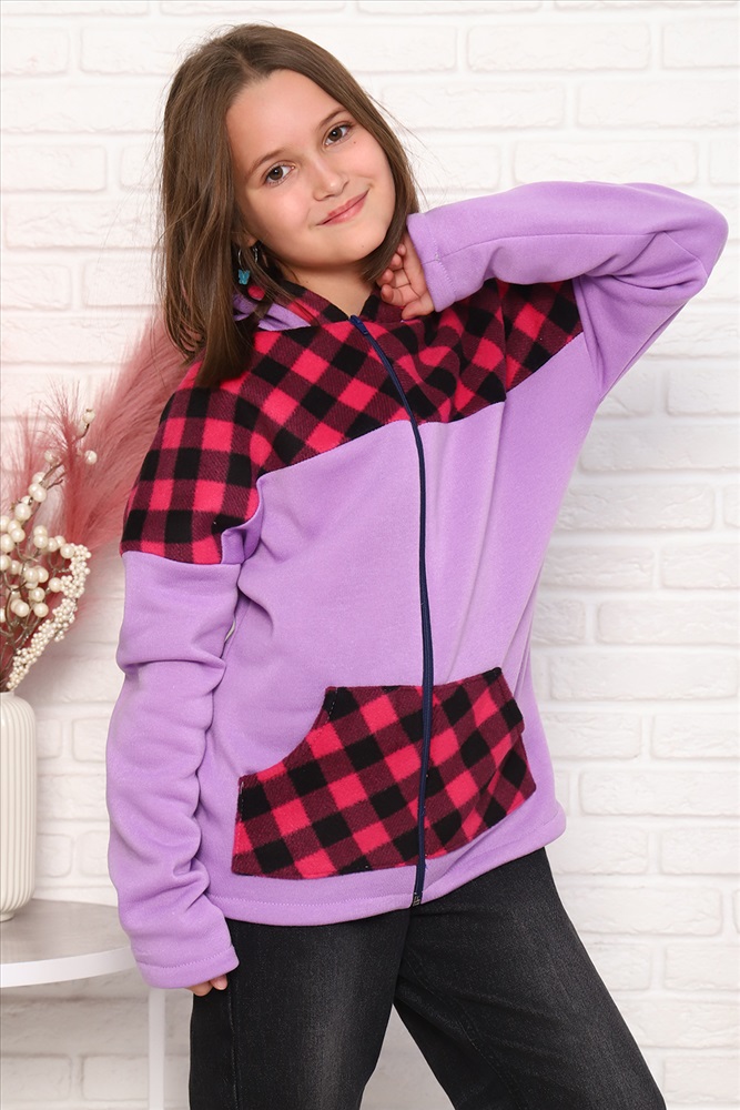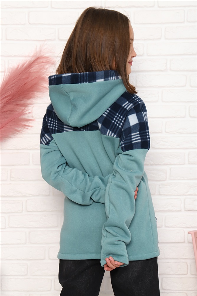 Детская комбинированная толстовка с капюшоном, на молнии. Карман кенгуру. Длинный рукав без манжетов. Теплая и удобная.