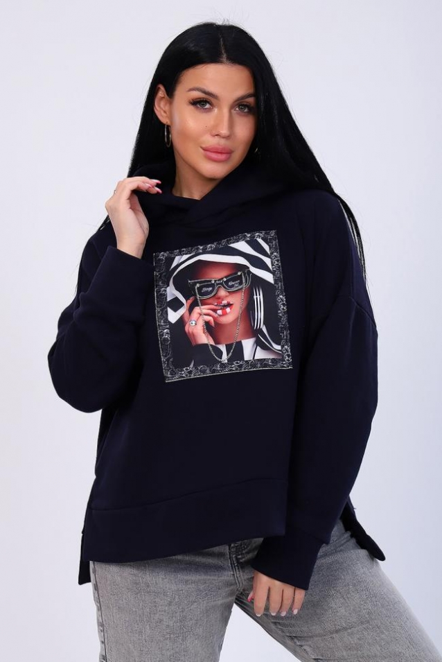 Худи женское оверсайз с капюшоном свободного кроя отлично подходит для повседневного использования. Эта модная модель женской толстовки с капюшоном украшена широкими рукавами и спущенной плечевой линией. Изюминкой данной модели худи является 3Д декор, расположенный в центре на полочке изделия. Женская кофта-худи в стиле оверсайз сшита из самого качественного полотна без начеса: футер 3х нитка петля, плотность 340 гр., ткань очень мягкая и теплая - отличное решение на любое время года. Удобные и мягкие манжеты не будут растягиваться и тем самым приносить дискомфорт при носке. Данная модель подойдет всем без исключения - добавьте в свой гардероб качественную, стильную и удобную вещь на все случаи жизни, в это модное худи с капюшоном так уютно заворачиваться прохладным осенним вечером на прогулке, выезжать на пикники с друзьями, ходить на работу и совершать утреннюю пробежку в парке. Женские толстовки оверсайз сейчас как никогда модные не только за счет своей объемности, но и функциональности. Цвет аппликации может отличаться (варианты представлены на фото).