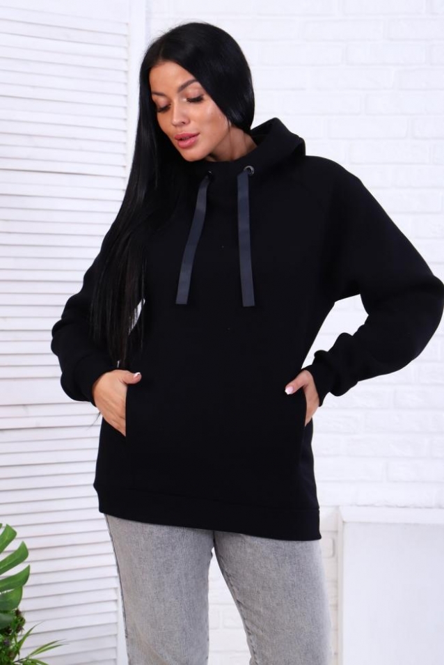Толстовка женская: рукав реглан с манжетами, капюшон с люверсами и с отделочной лентой, 2 внутренних кармана, низ изделия - пояс из кашкорсе