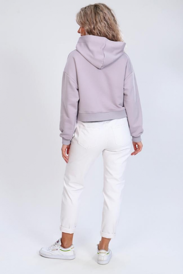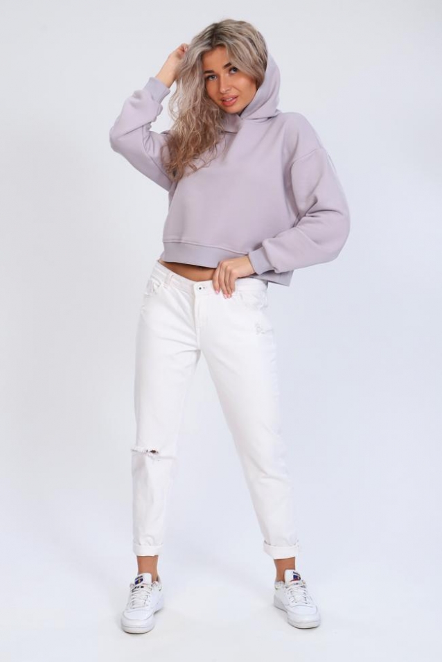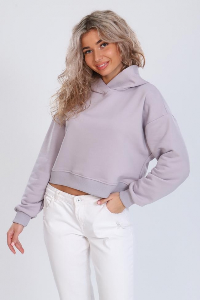 Укороченная толстовка с капюшоном и длинными рукавами на манжетах. Идеально подойдет для прогулок, активного отдыха и занятий спортом.